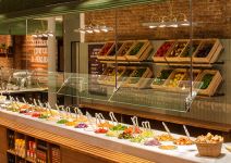 -Cocina tipo buffet, comida mediterránea, ensaladas, paella, pasta, pizzas, carnes, pescados, Sopas o cremas de temporada (calientes y/o frías, según temporada) Ensaladas (con más de 30 productos distintos para poder construir la propia al gusto) Platos calientes con variación diaria (estofados, pollo al horno, pescados, pizzas, paella, asados, pasta, patatas fritas…) Postres, Cafés, infusiones, helados y bebidas*